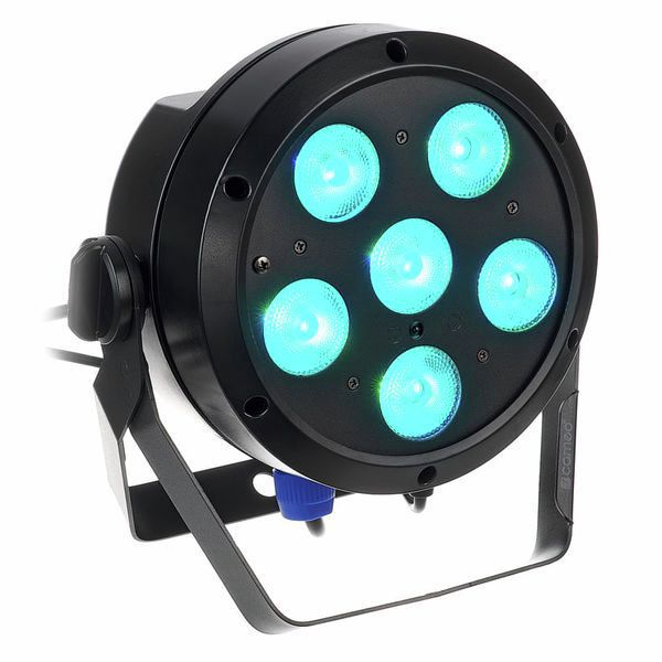 Ganz partywild werden mit sechs 12W-6-in-1-LEDs aus Rot, Grün, Blau, Amber und Weiß alle erdenklichen Farben gemischt, wenn nicht gerade das UV-Licht den Dancefloor in Szene setzt. Der Abstrahlwinkel ist mit 36° sowohl für Farbakzente als auch für die Ausleuchtung kleiner Flächen geeignet. Ganz wie bei Profistrahlern erfolgt die Stromversorgung des 195 x 133 x 195mm kleinen PARs an Power-Twist-Buchsen. Praktischerweise kann der Cameo ROOT Par 6 mit seinem Doppelbügel sowohl gehängt als auch gestellt werden. Alternativ nimmt man die Bügel ab und setzt die Leuchte mit einer Tiltschraube maßgeschneidert angewinkelt als Uplight ein. Bedient wird sie wahlweise im Stand-Alone- oder Master-Slave-Modus mit Tasten neben dem Display, einer optionalen Fernbedienung oder per DMX, das mit dem als Zubehör erhältlichen Cameo-iDMX-Stick auch per Funk empfangen werden kann. Einsteiger ebenso wie Verleiher, die einen leicht zu bedienenden Farbspot mit Profifeatures suchen, erhalten beim Cameo ROOT Par 6 eine besonders flexible und dabei farbstarke Leuchte. Ob nun Stroboskopblitze durch den Hobbykeller zucken oder buntes Showlicht eine kleine Mehrzweckbühne ziert – kräftige Farben sind in jedem Fall garantiert. Veranstalter kleiner Partys oder Galas setzen mit der EZchase-DMX-Delay-Funktion und mehreren Cameo ROOT Par 6 ohne Lichtpult ihre Locations in Szene, wobei die verriegelbaren Power-Twist-Anschlüsse für eine zuverlässige Stromzufuhr sorgen. Mobile DJs zaubern mit UV-Licht oder der Sound-to-Light-Funktion Effekte auf den Dancefloor, während auf kleinen Theaterbühnen und bei Lesungen auffällt, wie lüfterlos leise in den kleinen Dekolichtern gearbeitet wird, die in Hotels oder bei Ausstellungen zum exakt anwinkelbaren Uplight werden. Emotionen durch den Einsatz von Licht hervorzurufen und die Vorstellungskraft der Zuschauer zu beflügeln, ist das erklärte Firmenziel von Cameo. Cameo ist eine Eigenmarke der 1975 im englischen Southend-on-Sea von Adam Hall gegründeten Adam Hall Group, die einst mit der Fertigung hochwertiger Beschläge für Flightcases startete. Mittlerweile findet man den zentralen Firmensitz im hessischen Neu-Anspach. In Cameos Portfolio befindet sich die neuste und technisch ausgereifteste LED-Technik für die Veranstaltungsbranche. Das Unternehmen richtet den Fokus bei der Entwicklung der Produkte auf professionelle Funktionalität und eine lange Lebensdauer. Ganz ohne Lichtpult lassen sich mit den Cameo ROOT Par 6 und der EZchase-DMX-Delay-Funktion dekorative Lauflichtketten erstellen. Dazu werden die Spots beispielsweise entlang einer Wand als Uplights aufgestellt und in den Master-Slave- oder Auto-Modus versetzt. Nachdem nun jeder Scheinwerfer oder jede Gruppe im Menü eine Gruppennummer sowie eine Verzögerungszeit erhalten hat, können Einzelfarben oder Programme mit der gewünschten Verzögerung wiedergegeben werden. Dabei errechnet sich übrigens die maximal mögliche Verzögerungszeit aus der Gruppennummer multipliziert mit 1,2. Auch mit einem Lichtpult kann die EZchase-DMX-Delay-Funktion genutzt werden, wobei dann stets der letzte Fader die Delaytime reguliert.